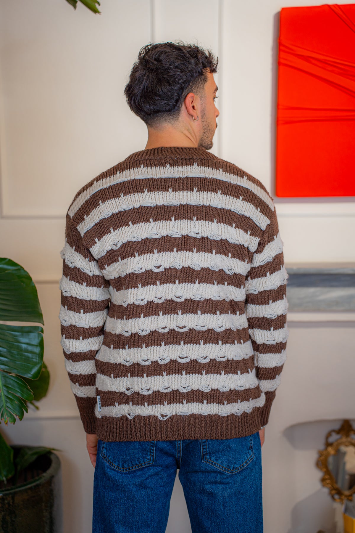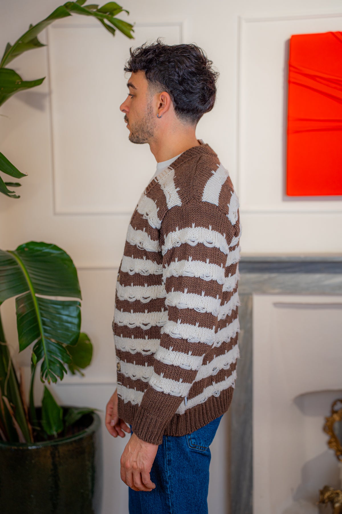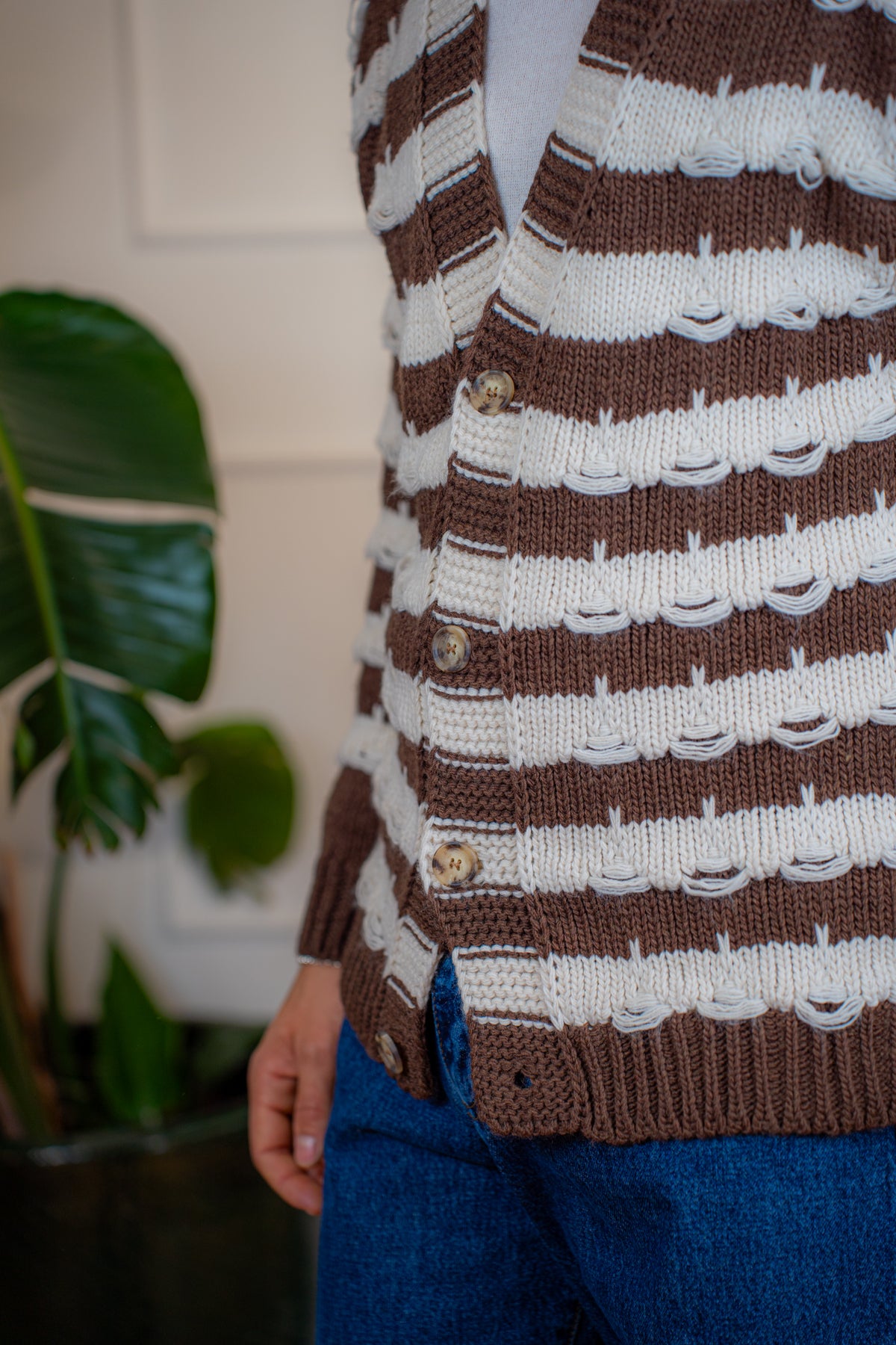 Cardigan a righe alternate Moro e Panna realizzato in 100% Dralon