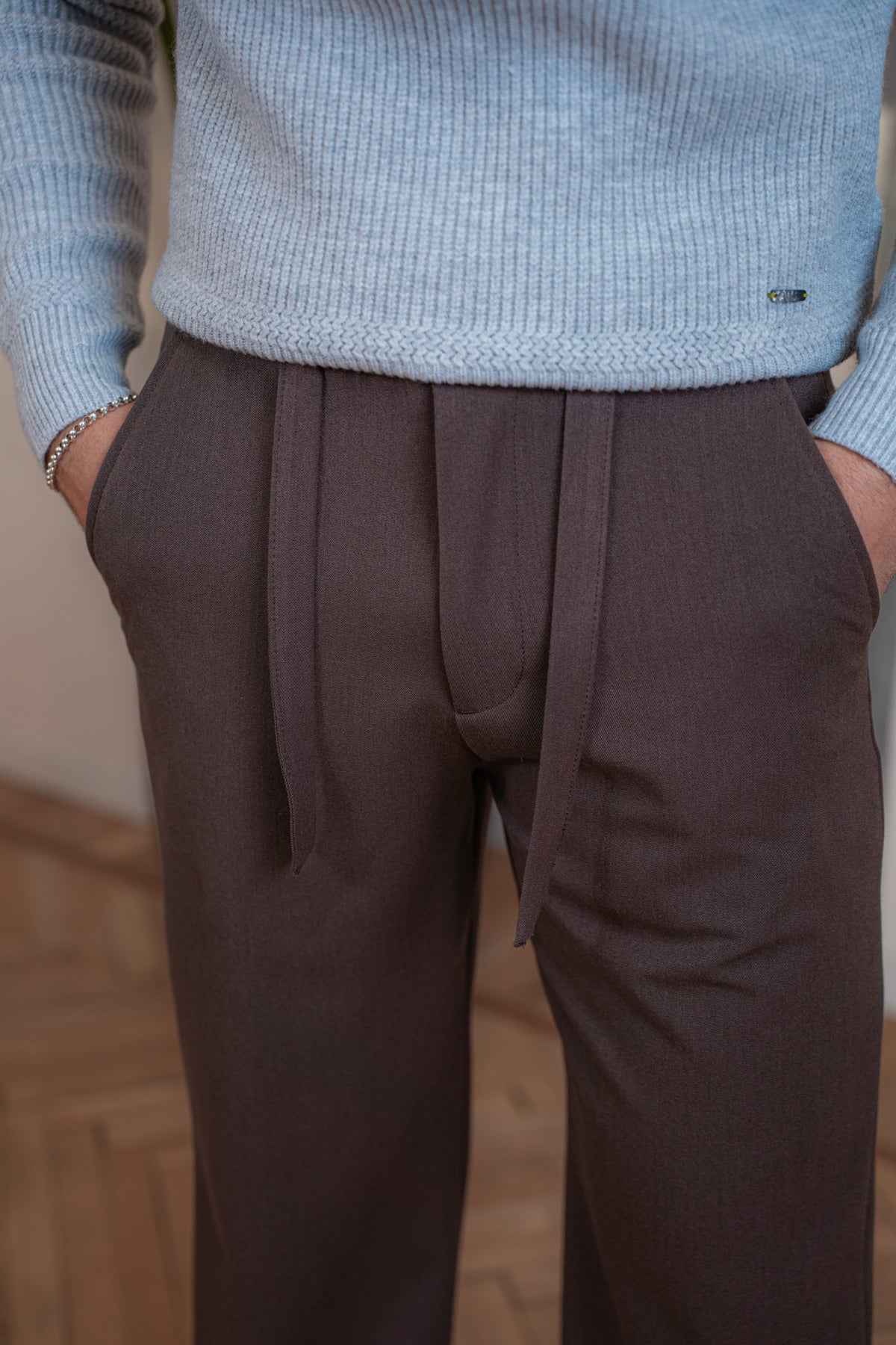 Pantalone realizzato in una calda Poliviscosa elasticizzata con maxi passanti e coulisse