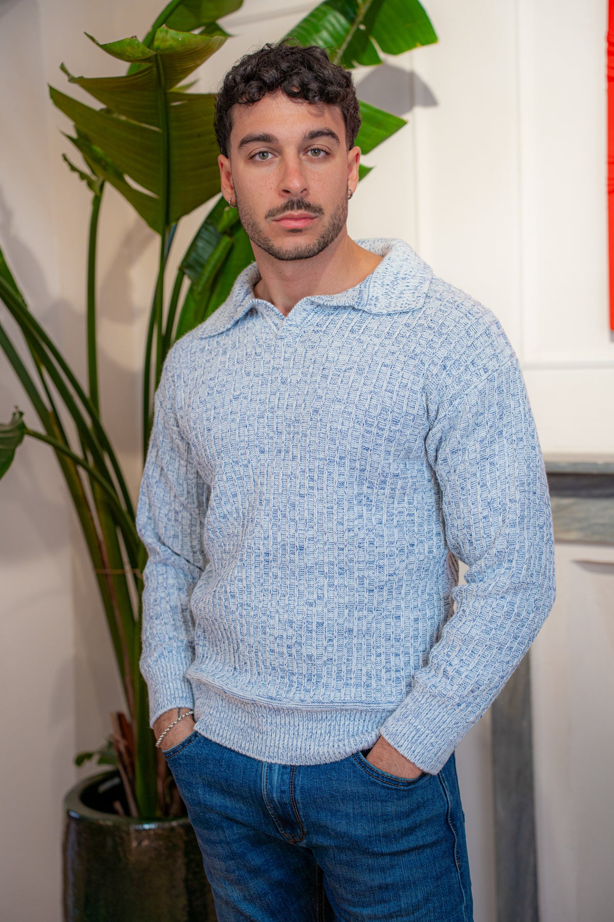 Polo scollo a V realizzata in 30% Lana & 70% Acrilica